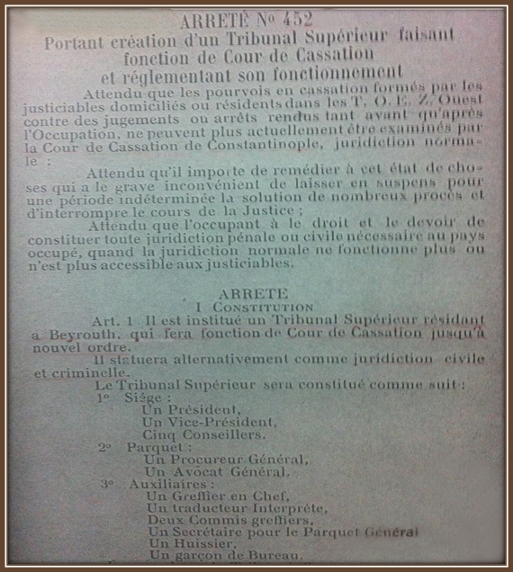 La création de la Cour de cassation libanaise par arrêté du 17 juin 1919