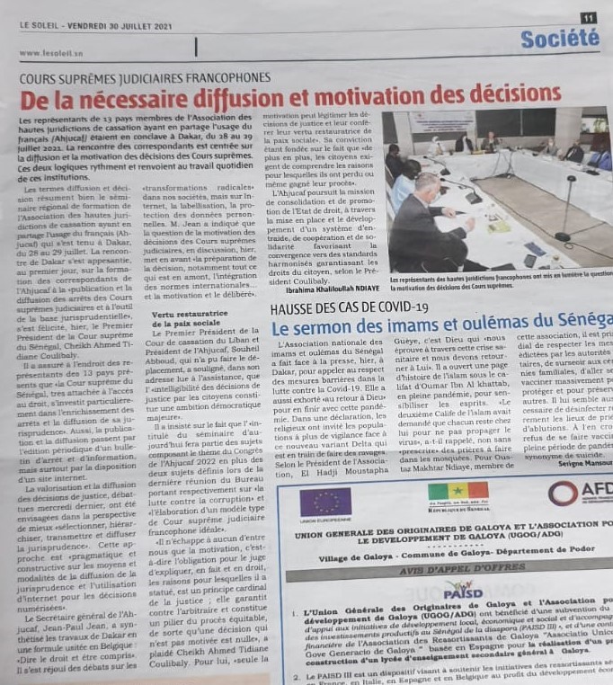- Jeudi 29 juillet 2021, le séminaire de l’AHJUCAF a eu pour thème la motivation des décisions des Cours suprêmes judiciaires de la Francophonie en Afrique, dans le cadre de la préparation du Congrès triennal qui aura lieu en mai 2022.