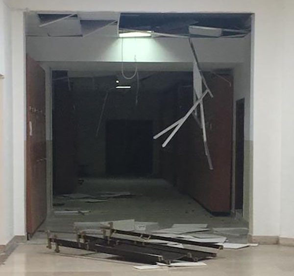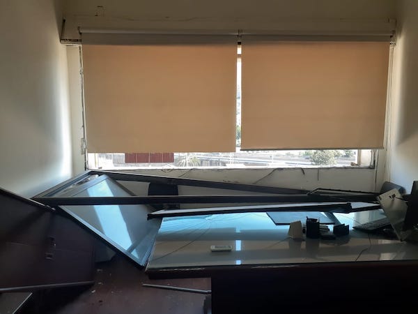 Les dégâts causés à la Cour de cassation libanaise sont considérables. Les photographies transmises par nos amis libanais permettent de mesurer les conséquences sur leurs conditions de travail : fenêtres cassées, plafonds effondrés, climatisation et chauffage hors d’usage, matériel de bureau renversé….. Et aucun moyen pour faire face, seules les bonnes volontés individuelles et collectives permettent les colmatages et certaines remises en état urgentes pour que le service public de la justice continue de fonctionner.
