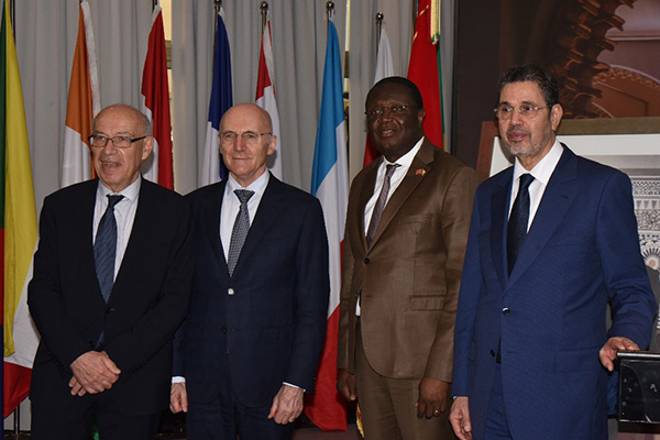 M. Christophe Soulard premier président de la Cour de cassation de France, avec l’ancien et le nouveau président de l’AHJUCAF, MM. les présidents Adossou et Abdenabaoui, et M. Jean-Paul Jean, élu président du Conseil scientifique.