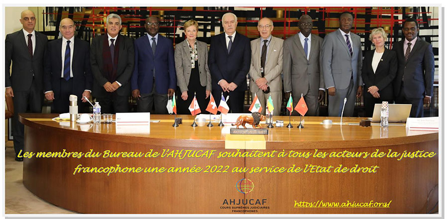 Les membres du Bureau de l’AHJUCAF souhaitent à tous les acteurs de la justice francophone une année 2022 au service de l’Etat de droit. La promotion de l'Etat de droit, la lutte contre la corruption, la diffusion des décisions de justice et leur meilleure compréhension par les justiciables sont au cœur des priorités des Hautes juridictions du réseau de la francophonie
