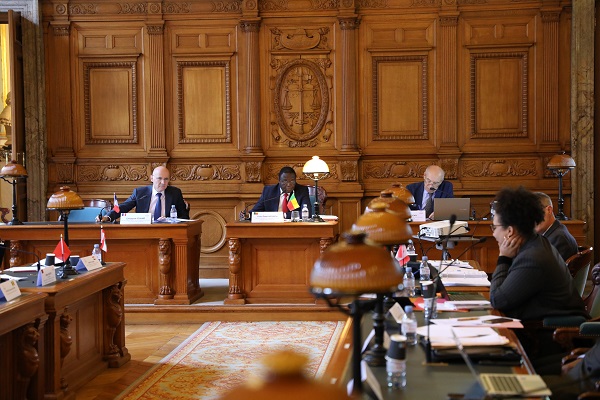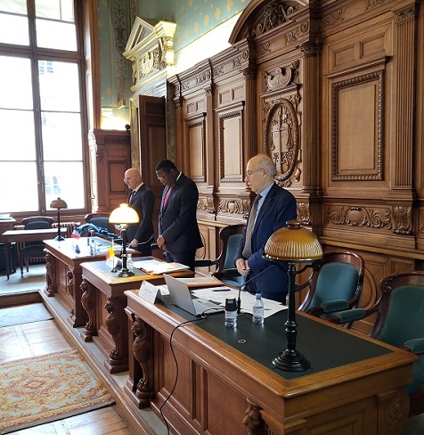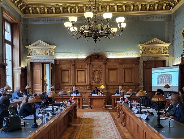 Après les mots d'accueil du premier président Christophe Soulard puis de l'intervention d'ouverture du président Victor Adossou, les membres du Bureau ont observé une minute de silence en hommage à Dominique Loriferne, président de chambre honoraire à la Cour de cassation et ancien secrétaire général de l'AHJUCAF, décédé le 15 mai 2023.