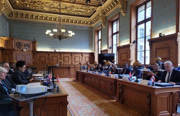 La situation géopolitique préoccupante pour l’Etat de droit et l’indépendance de la justice dans certaines zones de la francophonie, notamment dans les pays du Sahel, a été évoquée. M. le premier président Abboud a souligné la situation de la justice au Liban qui se trouve au bord de l'effondrement. Le président Adossou a présenté le colloque de l'Association africaine des hautes juridictions francophones des 4-6 décembre à Conakry (Guinée) sur le droit "transitoire" en Afrique auquel participe l'AHJUCAF. Il a souligné combien les Cours de la Francophonie devaient s'engager pour la défense de l'Etat de droit, mais aussi pour leur modernisation et l'amélioration de leur fonctionnement.