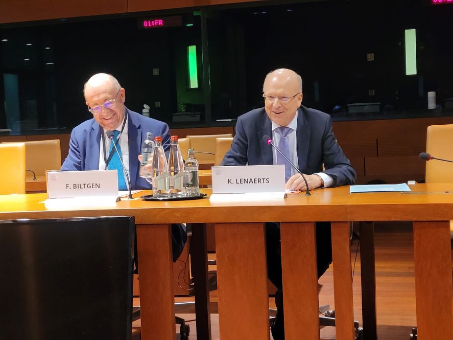 La délégation a également été reçue par le président Koen Lenaerts à la Cour de Justice de l’Union Européenne pour une visite suivie d'une réunion de travail.