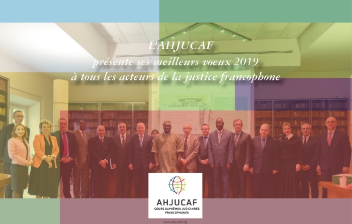 Meilleurs voeux 2019 01 janvier 2019 | Ahjucaf Retour à la liste des actualités L'AHJUCAF présente ses meilleurs voeux 2019 à tous les acteurs de la justice francophone.