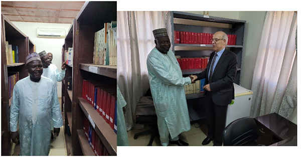 La visite qui a suivi a permis de voir la mise en évidence, dans la bibliothèque rénovée de la Cour de cassation du Niger, du don d’ouvrages de la Cour de cassation de France. Cette transmission de codes et d’ouvrages juridiques récents engagé avec 12 autres Cours va se poursuivre.