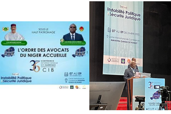 Le 36ème Congrès de la Conférence Internationale des Barreaux de tradition juridique commune (CIB), qui s’est déroulé à Niamey (Niger) les 7-9 décembre 2022 avait pour thème « Instabilité politique et sécurité juridique ».