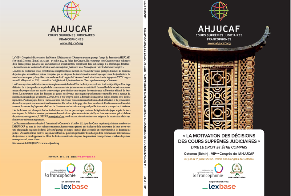 Les Actes du Congrès de Cotonou (Bénin) « La motivation des décisions de justice : dire le droit et être compris » vont être publiés fin janvier. Les Recommandations adoptées le 1er juillet 2023 à Cotonou traduisent cette volonté de placer la justice au service du citoyen.