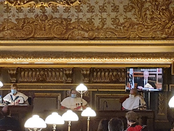Devant le Premier ministre, Jean Castex, le garde des Sceaux, Éric Dupond-Moretti et de nombreuses personnalités, Souheil Abboud, qui a dû annuler son déplacement à Paris du fait de la crise sanitaire s'est exprimé en visioconférence après les interventions de Chantal Arens et de François Molins, procureur général.