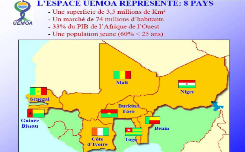 L'Union économique et monétaire ouest africaine (UEMOA), est une organisation sous-régionale qui a comme pour mission la réalisation de l'intégration économique des États membres, à travers le renforcement de la compétitivité des activités économiques dans le cadre d'un marché ouvert et concurrentiel et d'un environnement juridique rationalisé et harmonisé. Aujourd'hui, l'Union regroupe sept pays qui ont en commun l'usage du français (Bénin, Burkina, Côte d'ivoire, Niger, Mali, Sénégal, Togo), et un Etat lusophone en l'occurrence la Guinée Bissau, qui a adhérée en 1997.
